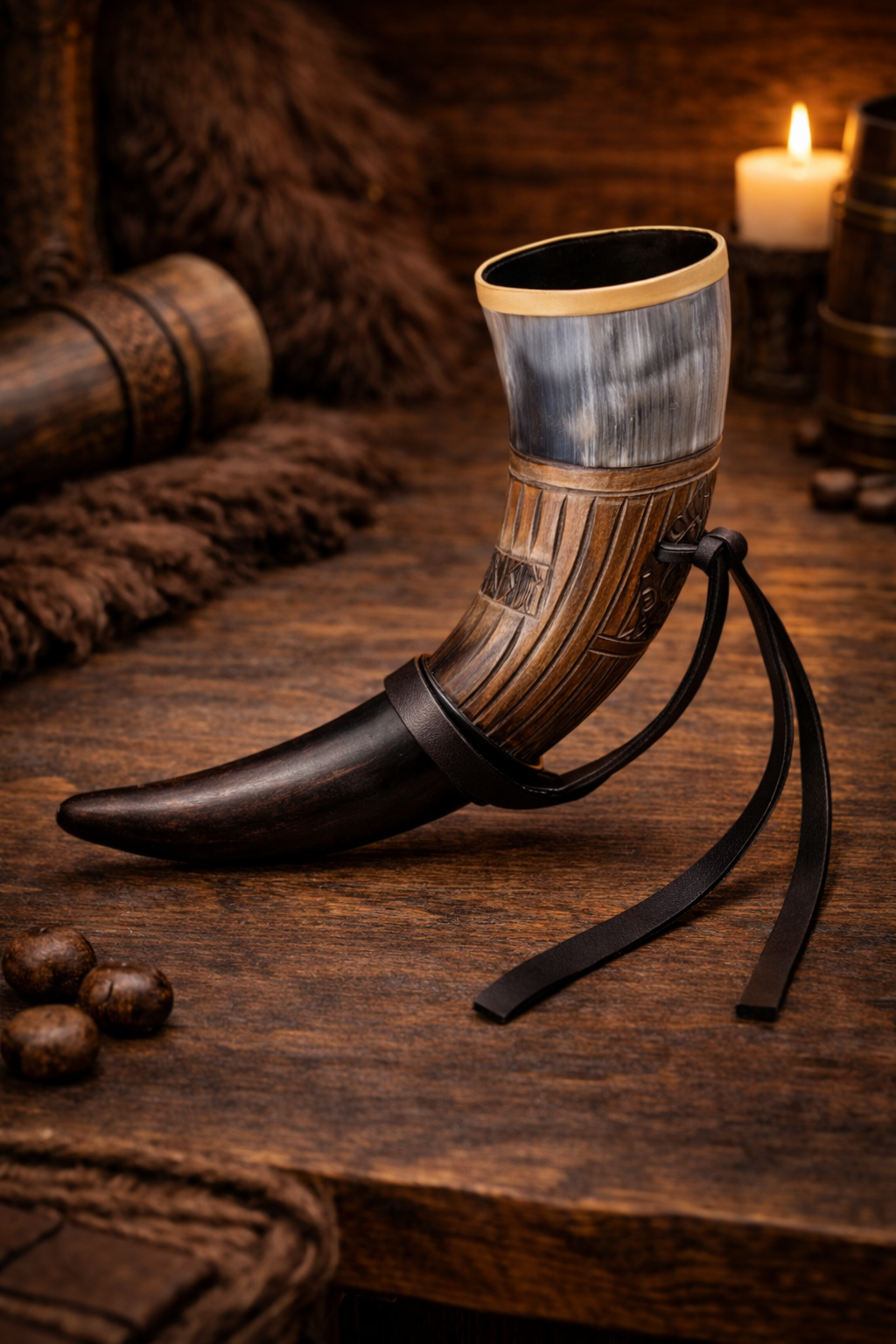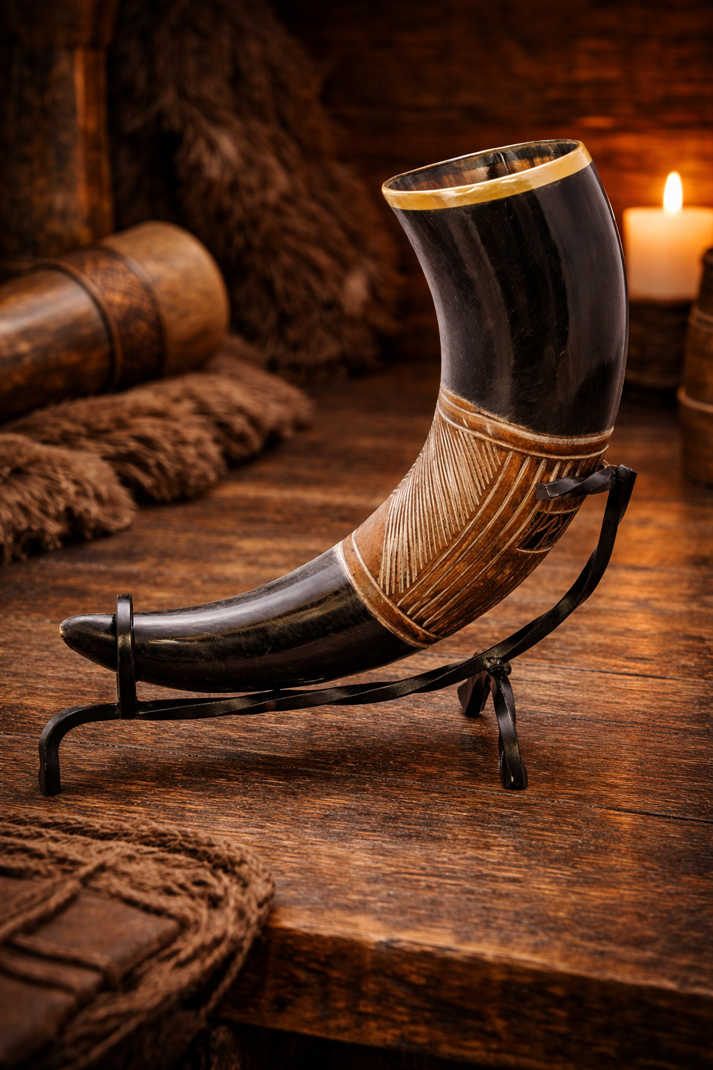 Corno animale decorato con bordo in sfoglia dorata