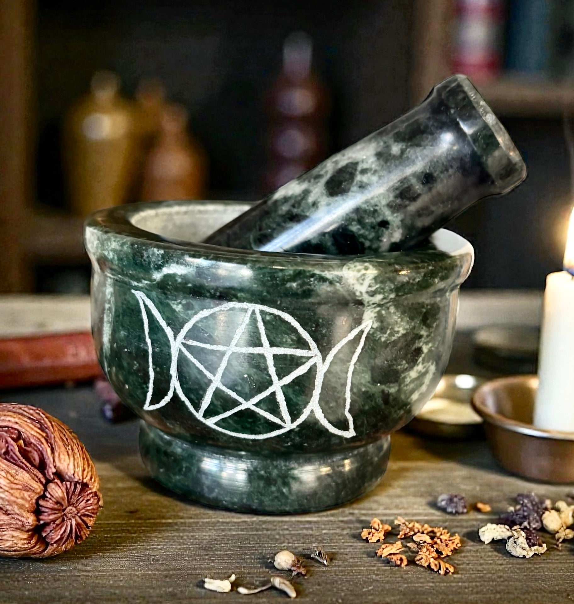 Mortaio in marmo per pestare e sminuzzare erbe e resine